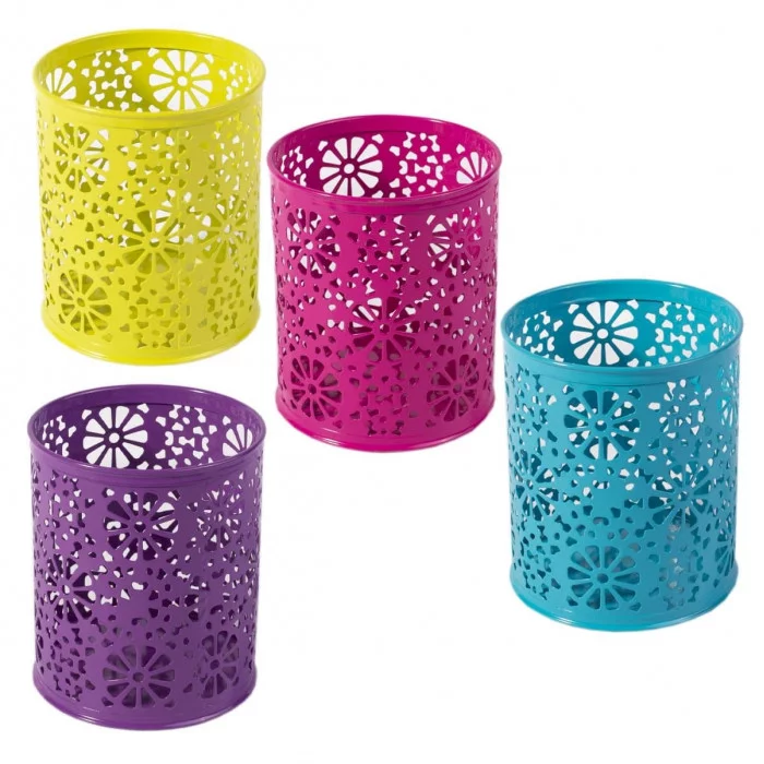 Подставка-стакан для канцтоваров Alingar, металлическая, круглая, узор "Одуванчики", ассорти AL9477