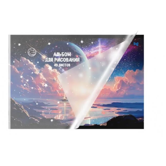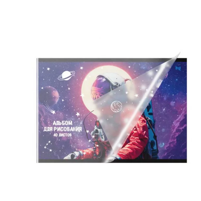 Альбом для рисования 40л., А4, на скрепке BG "Космические истории", пластиковая обложка 383115