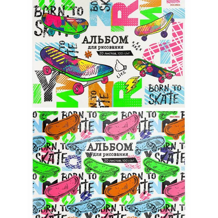 Альбом для рисования А4 20л. РАЗНОЦВЕТНЫЕ СКЕЙТЫ 20-5116