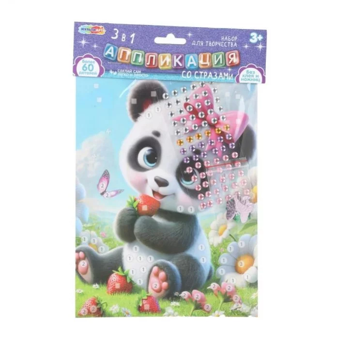 Аппликация 3 в 1 "Панда" картон, эва, стразы PANAPP-130405