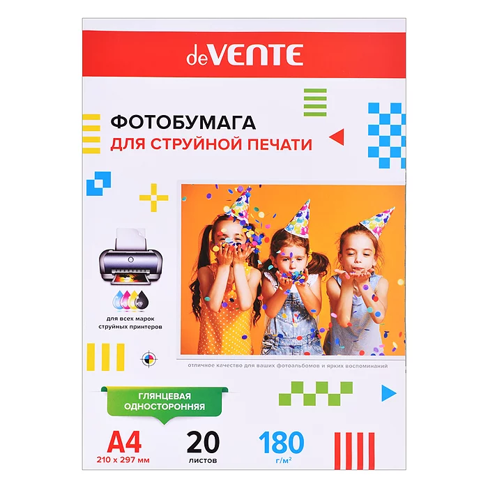 Фотобумага для струйной печати A4, 20 л, 180 г/м², глянцевая односторонняя, в пластиковом пакете с европодвесом 2042900