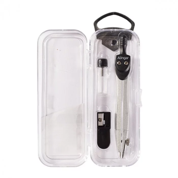 Готовальня Alingar, 3 предмета, металлический циркуль, 82 мм, грифель, точилка чёрный AL4506/1