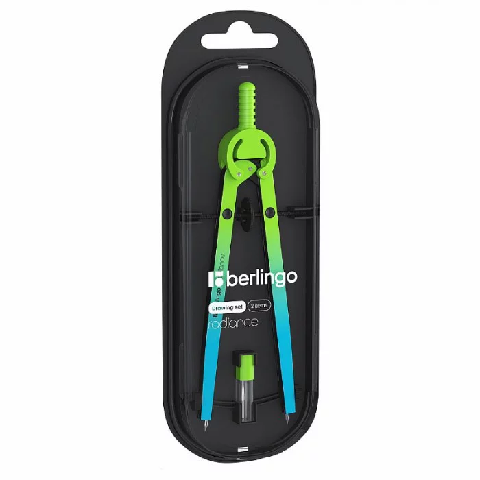 Готовальня Berlingo "Radiance", 2 предмета, циркуль 170мм, голубой/зеленый градиент, пластиковый футляр 339132