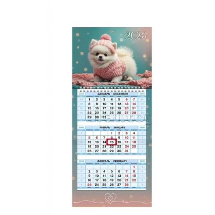 Календарь квартальный 3-х блоч. на 1 гребне 195х440мм МИНИ-1 бум. Офсет. цветной блок с бегунком