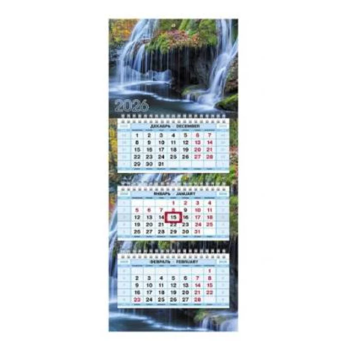 Календарь квартальный 3-х блоч. на 3-х гребнях 195х470мм МИНИ-3 бум. Офсет. цветной блок с бегунком КлнБ258