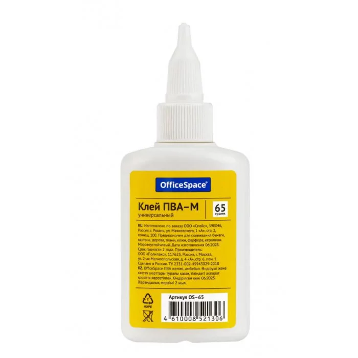 Клей ПВА OfficeSpace, 65г, с дозатором OS-65
