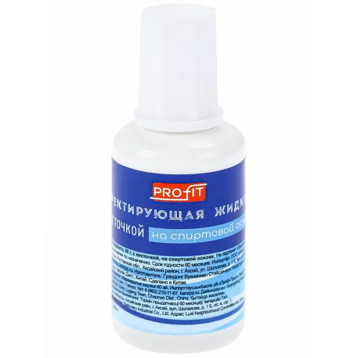 Корректирующая жидкость пригодится офисным сотрудникам, школьникам и студентам для исправления ошибок в печатных или рукописных текстах. Кисть удобна в использовании для коррекции ошибок любой площади. Перед применением жидкость необходимо взболтать, а после использования закрыть колпачком, чтобы предотвратить засыхание. Средство мгновенно высыхает на бумаге, ложится тонким слоем, не оставляя контуров. На спиртовой основе. Вес: 20 гр.