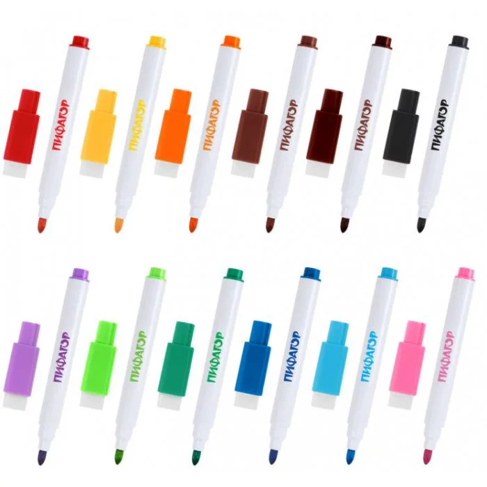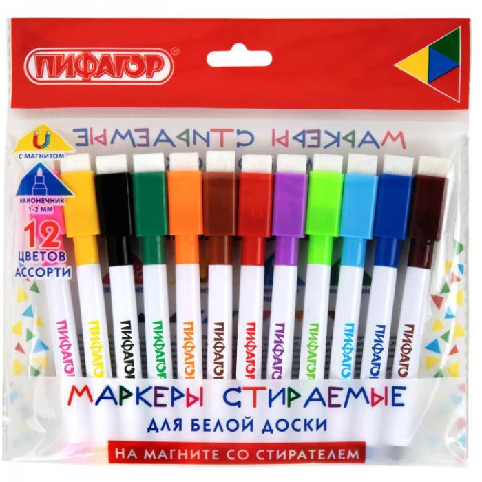 Набор стираемых маркеров для доски и магнитного планера ПИФАГОР предназначен для использования на изделиях с магнитно-маркерной поверхностью и стекле. Идеально подходит для рисования, игр, визуализации учебных процессов.