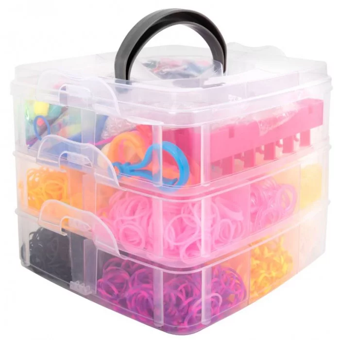 Набор резинок для плетения украшений 3 000 шт., 15 цветов, бокс, бусины, станок, BAMBOX (БАМБОКС), 665976