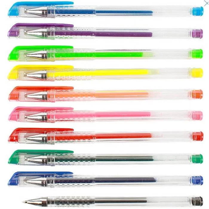 Набор ручек гел. 10цв. "Darvish" флюор. корпус прозрачный упаковка на кнопке DV-118-10