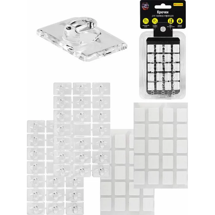 Набор самоклеящихся крючков для гирлянд помогут легко и красиво украсить помещение к празднику без применения дрели или гвоздей! Они компактны и почти незаметны, не портят интерьер. Количество крючков: 40 шт. Размер: 1,3х1,9 см.