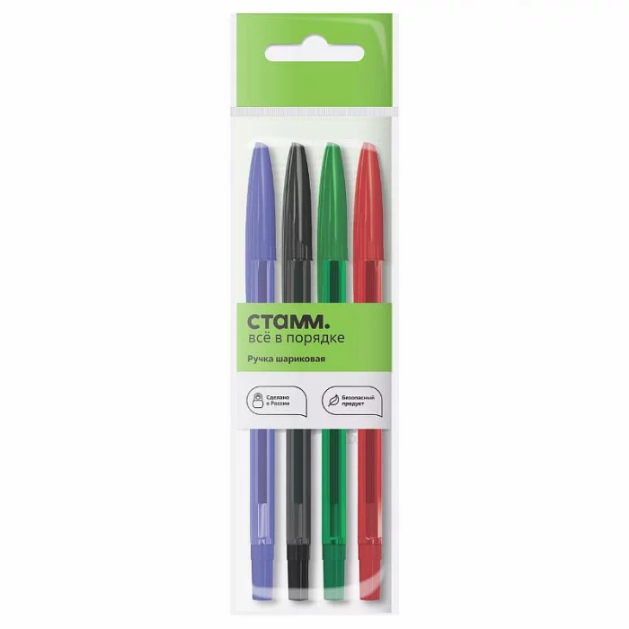 Набор шариковых ручек СТАММ "111" 4шт., 04цв., 1,0мм, тонированный корпус, пакет с европодвесом 346492