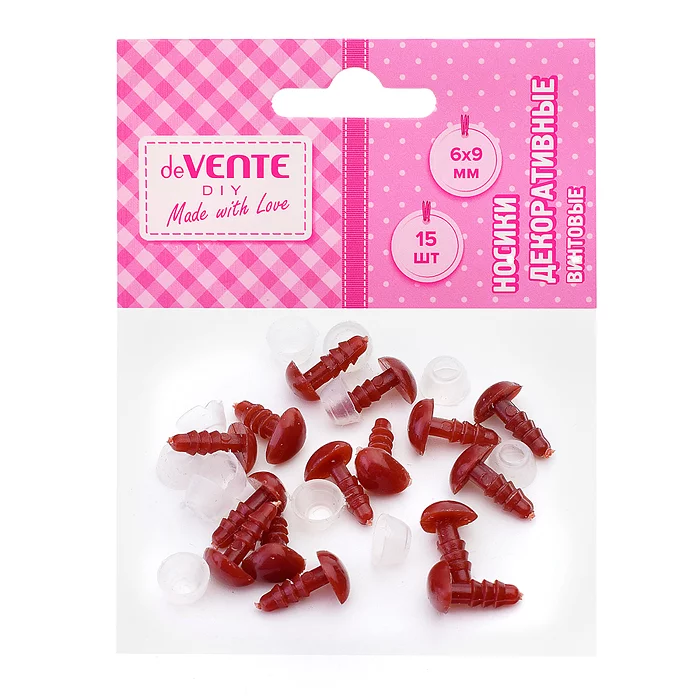Носики декоративные пластиковые, винтовые с фиксатором, 15шт, 6x9 мм, коричневые в пластиковом пакете с блистерным подвесом 8001343