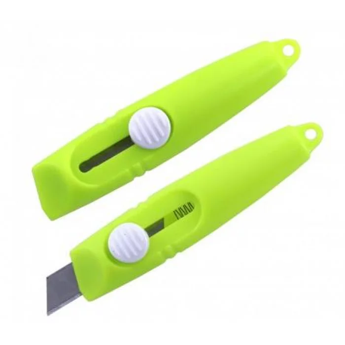 Нож канцелярский Alingar, 9 мм, детский мини, с механической фиксацией лезвия, цветной пластик. корпус 7.5 см, ассорти, неон, блистер AL11216