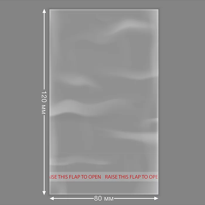 Пакет упаковочный с клеевой полосой 80x120 мм,100 шт в упаковке, ПНД, 25 мкм, прозрачный, 4167301