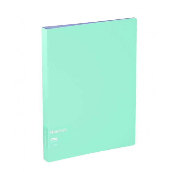 Папка на 4 кольцах Berlingo серии Haze формата А4 (310*250*24 мм) – отличный и стильный помощник для хранения документов с плотной обложкой с приятной soft–touch-фактурой. Толщина обложки – 600 мкм. Стильный пастельный мятный цвет обложки и контрастный пастельный сиреневый цвет внутренней поверхности. Папка изготовлена из высококачественного полипропилена с особой фактурой с эффектом soft–touch.