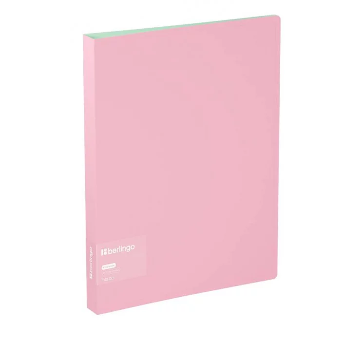 Папка на 4 кольцах Berlingo серии Haze формата А4 (310*250*24 мм) – отличный и стильный помощник для хранения документов с плотной обложкой с приятной soft–touch-фактурой. Толщина обложки – 600 мкм. Стильный пастельный розовый цвет обложки и контрастный пастельный мятный цвет внутренней поверхности. Папка изготовлена из высококачественного полипропилена с особой фактурой с эффектом soft–touch.
