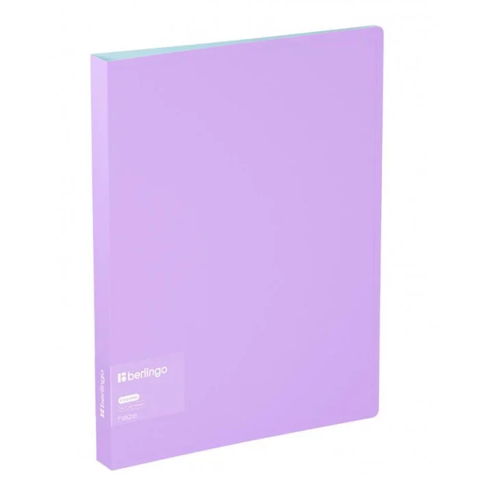 Папка на 4 кольцах Berlingo серии Haze формата А4 (310*250*24 мм) – отличный и стильный помощник для хранения документов с плотной обложкой с приятной soft–touch-фактурой. Толщина обложки – 600 мкм. Стильный пастельный сиреневый цвет обложки и контрастный пастельный голубой цвет внутренней поверхности. Папка изготовлена из высококачественного полипропилена с особой фактурой с эффектом soft–touch.