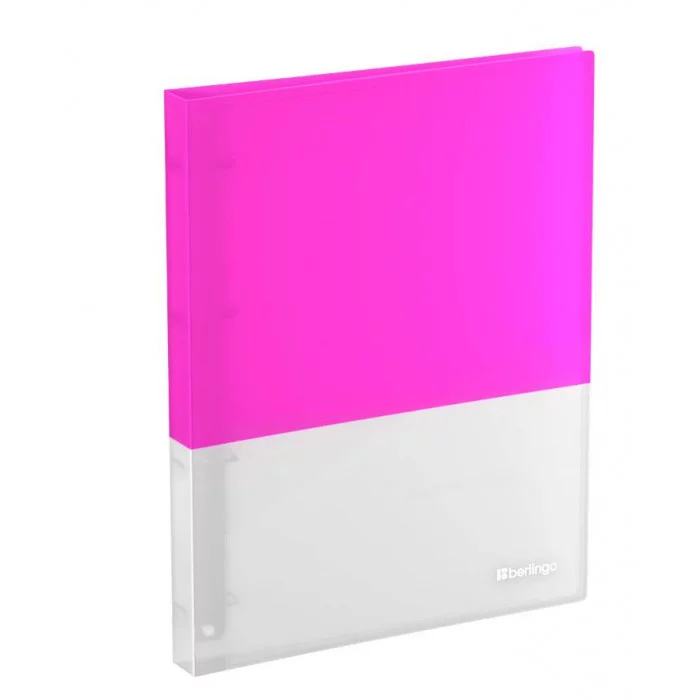 Папка на 4 кольцах Berlingo серии Semicolor формата А4 (310*250*24 мм) – отличный и стильный помощник для хранения документов. Обложка папки толщиной 700 мкм сочетает полупрозрачную и яркую розовую поверхность. Папка изготовлена из высококачественного полипропилена с особой фактурой с эффектом soft-touch.