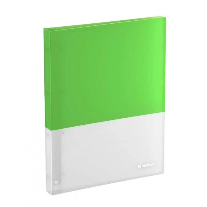 Папка на 4 кольцах Berlingo серии Semicolor формата А4 (310*250*24 мм) – отличный и стильный помощник для хранения документов. Обложка папки толщиной 700 мкм сочетает полупрозрачную и яркую салатовую поверхность. Папка изготовлена из высококачественного полипропилена с особой фактурой с эффектом soft-touch.