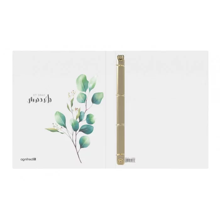 Вместимость папки – 150 листов, ширина корешка – 24 мм. Эффектный золотистый кольцевой механизм с четырьмя кольцами диаметром 20 мм надежно фиксирует перфорированные документы и файлы-вкладыши. Специальная D-форма колец обеспечивает удобное расположение и ровное хранение бумаг, а вертикальная боковая стенка облегчает выравнивание документов по левому краю.