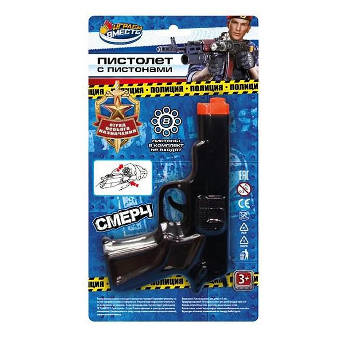Пистолет для стрельбы пистонами 8 зарядов, Полиция, блистер 81081-8247-R