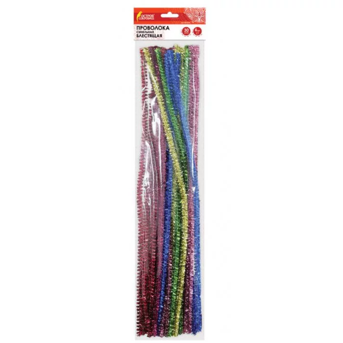 Проволока синельная для творчества "Блестящая", 6 цв., 30 шт., 6х30 см, ОСТРОВ СОКРОВИЩ, 661522