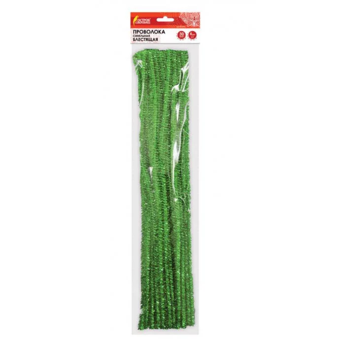 Проволока синельная для творчества "Блестящая", зеленая, 30 шт., 6х30 см, ОСТРОВ СОКРОВИЩ, 661542