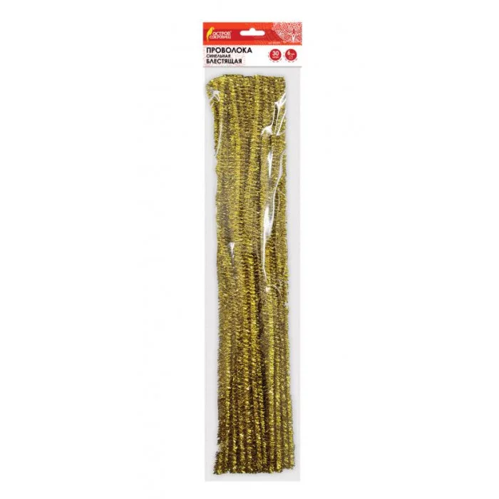 Проволока синельная для творчества "Блестящая", золотая, 30 шт., 6х30 см, ОСТРОВ СОКРОВИЩ, 661541