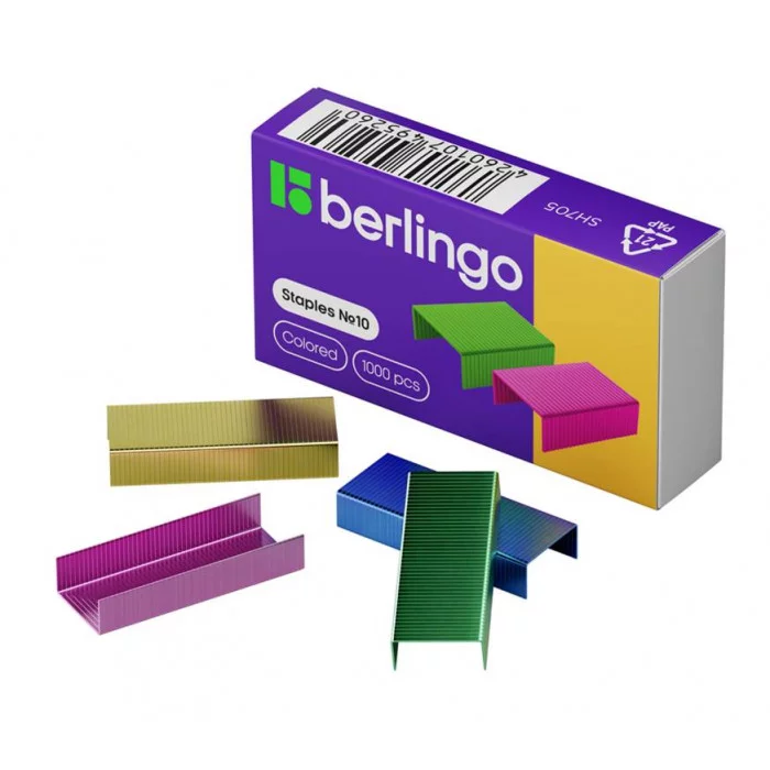 Скобы для степлера №10 Berlingo, цветные, 1000шт. 264147