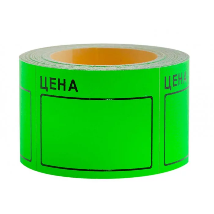 Ценник-лента. В упаковке 1 ролик 200 штук. Размер наклейки - 5х4 см. Цвет - зеленый.
