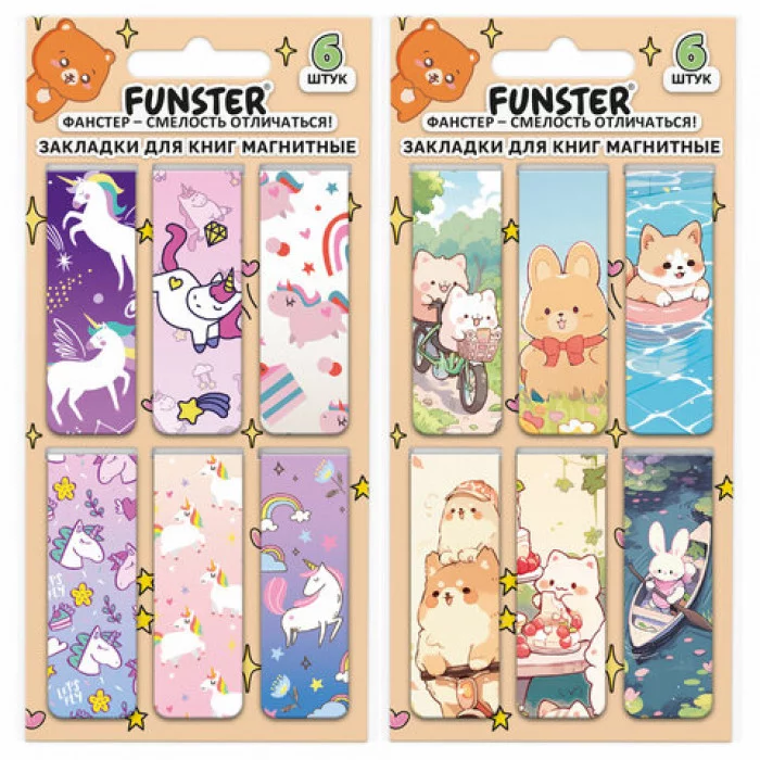 Закладки для книг МАГНИТНЫЕ, "GIRLS", комплект 12 штук, 60x20 мм, FUNSTER (ФАНСТЕР), 116654