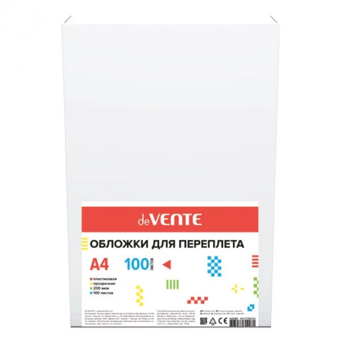 Обложки для переплета А4 пластиковые 100 штук плотность 200мкм прозрачные DEVENTE 4121302