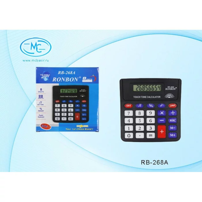 Калькулятор: 8 разрядный, в индивидуальной упаковке, размер: 12*13*2см. RB-268A