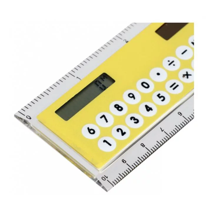 Калькулятор-линейка 10см 8-разрядный корпус прозрачный,с транспортиром, работает от света 3854080