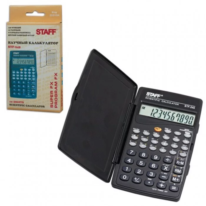 Непрограммируемый инженерный калькулятор STAFF STF-245 выполняет все основные вычисления, которые понадобятся школьникам на экзаменах и контрольных работах по физике, химии, биологии и географии. Сертифицирован для использования на ЕГЭ и ОГЭ. 128 встроенных научных и статистических функций позволяют вычислять степени и квадратные корни, логарифмы и антилогарифмы, прямые и обратные тригонометрические функции. Устройство также осуществляет статистические расчёты, тригонометрические расчёты в градусах, радианах и градах. Калькулятор может переключаться между двоичной, восьмеричной и шестнадцатеричной системах исчисления. Вычислительная мощность калькулятора позволяет обрабатывать до пятнадцати уровней выражений в скобках. Результаты вычислений хорошо видны на большом контрастном дисплее. Встроенный аккумулятор обеспечивает длительную работу устройства при любом освещении. Практичная пластиковая крышка защищает калькулятор от грязи и случайного включения.