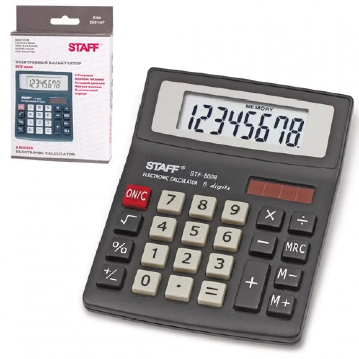 Калькулятор STAFF настольный STF-8008, 8 разрядов, двойное питание, 113х87мм
