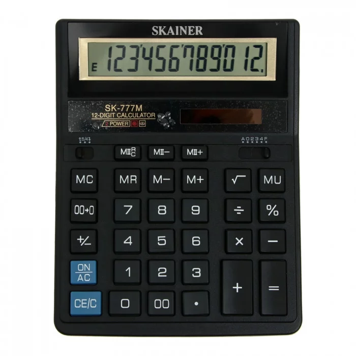 Настольный калькулятор SKAINER SK-777M (пл., 12 разрд., 2 пит., 2 пам., чер. 157 x 200 x 32 мм)(SDC-888TII)