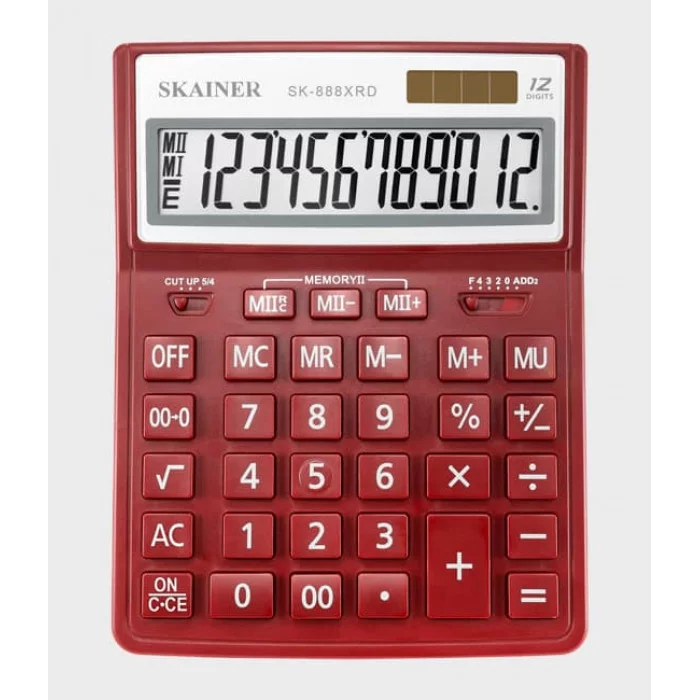 Настольный калькулятор SKAINER SK-888XRD (пл., 12 разрд., 2 пит., 2 пам., крас. 155 x 204 x 34 мм)