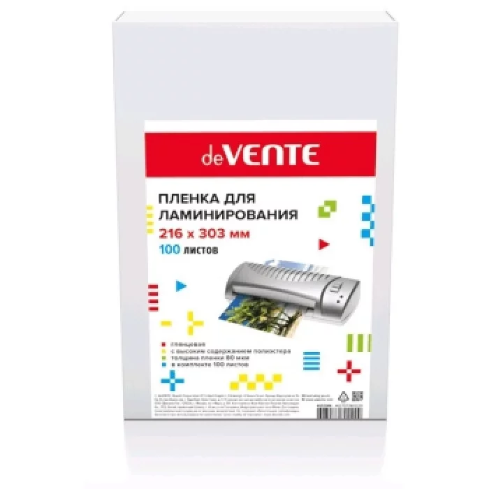 Пленка для ламинирования А4 80мкм 100шт/уп глянцевая DEVENTE 4122304 351819