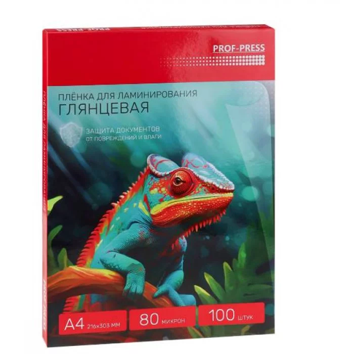 Пленка для ламинирования, глянцевая, 100шт., толщина 80 мкр, размер А4, 216*303 мм (ПЛЛ-2650) ПЛЛ-2650