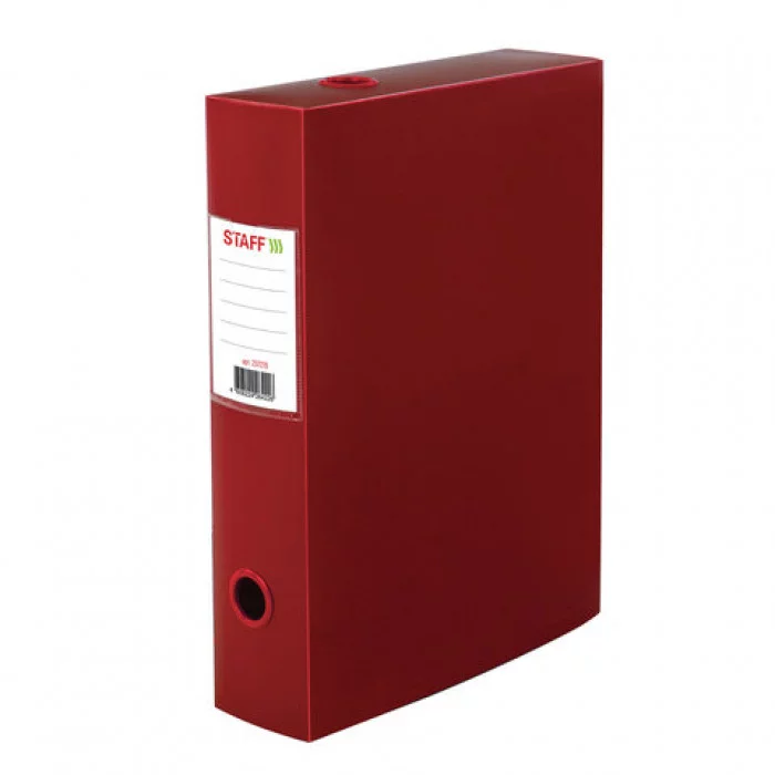 Архивный короб STAFF предназначен для хранения большого объема документации. Незаменим в работе бухгалтерии средних и крупных предприятий, а также в государственных учреждениях, налоговых инспекциях, паспортных столах и т.д. Вмещает до 750 листов формата А4. Изготовлен из прочного пластика красного цвета толщиной 0.7 мм. В закрытом виде фиксируется с помощью металлической кнопки. Размер - 330х245х70 мм. Сменная этикетка в кармане на корешке. Поставляется в разобранном виде.