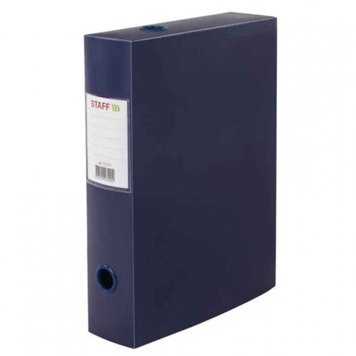 Архивный короб STAFF предназначен для хранения большого объема документации. Незаменим в работе бухгалтерии средних и крупных предприятий, а также в государственных учреждениях, налоговых инспекциях, паспортных столах и т.д. Вмещает до 750 листов формата А4. Изготовлен из прочного пластика синего цвета толщиной 0.7 мм. В закрытом виде фиксируется с помощью металлической кнопки. Размер - 330х245х70 мм. Сменная этикетка в кармане на корешке.Поставляется в разобранном виде.