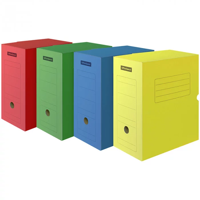 Короб архивный с клапаном 1 шт. OfficeSpace, микрогофрокартон, 150мм, ассорти цветной, до 1400л. 225415