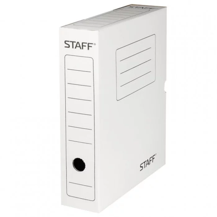 Короб архивный с клапаном А4 (260х325 мм), 75 мм, до 700 листов, микрогофрокартон, БЕЛЫЙ, STAFF, 128858
