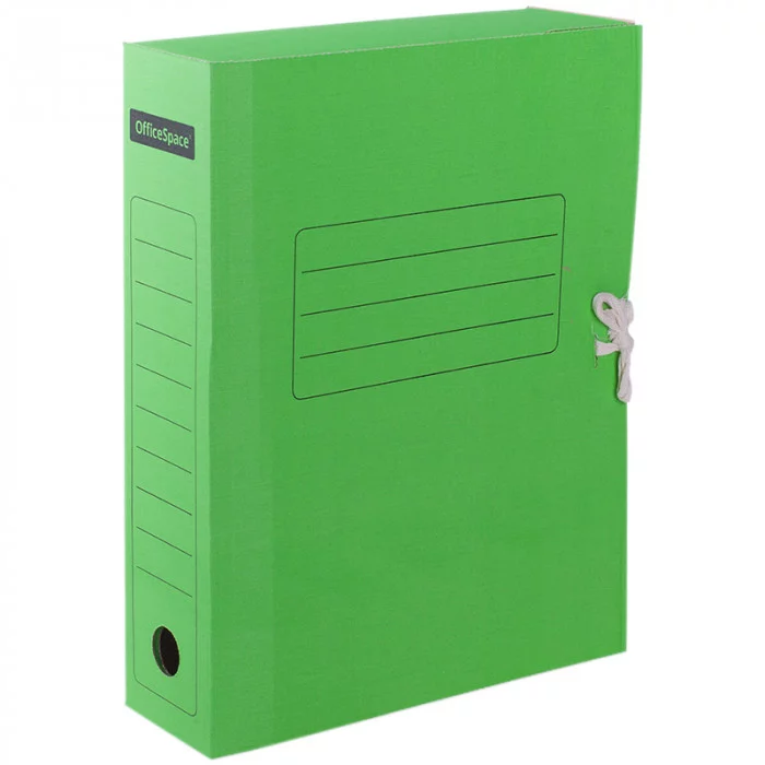 Папка архивная из микрогофрокартона OfficeSpace с завязками, ширина корешка 75мм, зеленый Спейс 225431
