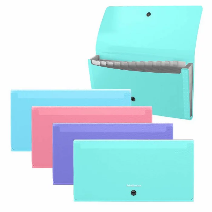 Папка-картотека пластиковая ErichKrause Diagonal Pastel, с 13 отделениями, Check size, ассорти 61213