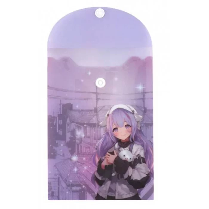 Папка-конверт на кноп А6 (115*165мм) 0,15мм КОКОС Аниме милашка 240334 непрозрачная с рисунком 240334