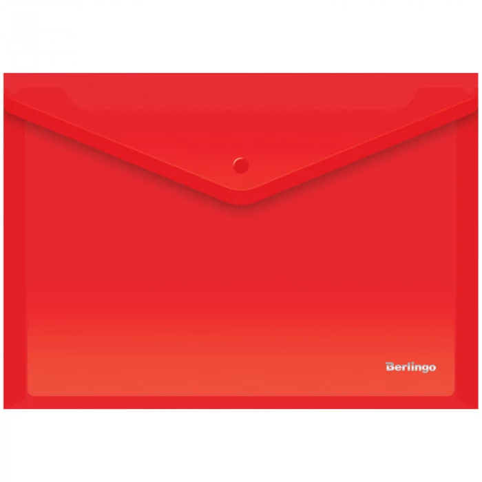 С папкой-конвертом на кнопке Berlingo формата А4 все важные документы будут под надёжной защитой. Изделие яркого красного цвета. Папка плотно закрывается на кнопку, которая рассчитана на ежедневное использование. Папка-конверт размером 330*235 мм и толщиной 180 мкм изготовлена из пластика, который защищает изделие от сминания и других повреждений. Изделие имеет горизонтальную ориентацию. Вместимость – 100 листов формата А4. Индивидуальная упаковка в пакет. Вместимость, в листах: 100; Материал: пластик; Ориентация: горизонтальная; Размер: 330*235 мм; Способ фиксации: кнопка; Текстура: глянцевая; Толщина материала: 180 мкм; Формат: А4; Цвет: красный.