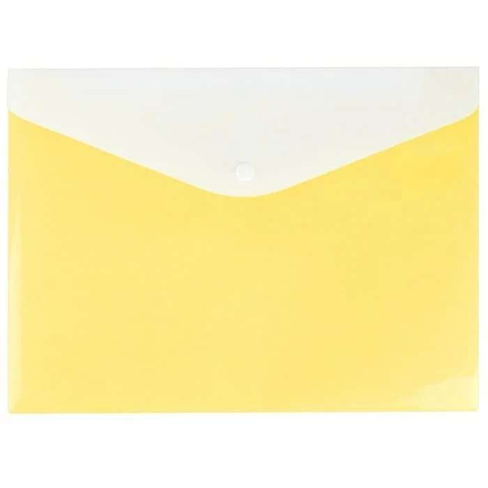 Папка-конверт на кнопке А4с 2 отделениями серия Ice . Цвет :о жёлтый. Предназначена для хранения и переноски документов.На лицевой стороне папки есть место для крепления ручки. Размер папки : 33*24см